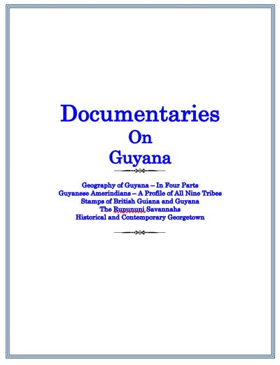 This 35-minute long documentary on Guyanese Amerindians contains over 300 captivating photographs and texts that will give readers a visual journey into the everyday life and other issues of the nine Amerindian tribes currently living in Guyana: Ackawaois, Arawaks, Arekunas, Caribs, Makushi, Patamona, Wai Wai, Wapishana, and Warrau.
